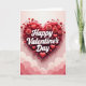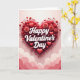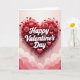 This greeting card shows a large, deep red heart taking up most of the top part of the design, with a soft shine that makes it feel raised. Across the center of the heart, the words “Happy Valentine’s Day” appear in white letters with a gentle shadow, making the message easy to read. Around the main heart, several smaller red hearts float nearby, adding a sweet, light feeling. A few blush-red roses with layered petals sit close to the heart, bringing in a classic touch of romance. Curving red lines loop around the heart like decorative curls, helping frame the center without taking attention away from the message. The background fades from pale pink to a deeper rose color, with soft, wavy cloud shapes along the lower area. It feels meaningful to give because it says “I care about you” in a simple, loving way that works for a partner or a close friend 🥰❤️. Hope it helps you share your Valentine’s Day feelings with someone you care about.