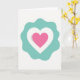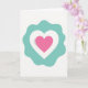 This card shows three layered hearts centered on the front, with a bright pink heart sitting inside a larger white heart. The white heart is set into a wide teal shape with gently wavy edges, all on a soft off-white background. A faint shadow under the pink heart makes it look slightly raised, like it’s resting softly in place. The simple layers and open space make the hearts feel close and protected, which fits romance or a caring friendship. There’s no text on the front, so the image does all the talking and leaves room for your own words inside. The pink, white, and teal colors feel calm but still loving, drawing your eye right to the middle. It’s a meaningful card to give when you want to say “I’m here” without needing a lot of extra details 🥰❤️.