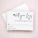 This wedding RSVP card features a modern script typography. The clean layout keeps responses easy to read and fill out.