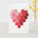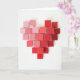 This greeting card shows a large heart made from many small, stamp-edge squares arranged like a careful mosaic. The little pieces sit slightly raised, so the heart looks textured and you can almost imagine running your fingers over it. Color shifts across the heart from pale pinks and peach on the left to deep red and scarlet on the right, giving it a gentle sense of movement. The background is plain white, which makes the heart stand out without anything else competing for attention. There’s no extra scene or characters here, just a simple, focused design that keeps your eyes on the heart itself. There isn’t any printed message on the front, so your handwritten note inside becomes the main way you say what you feel 🥰. It feels meaningful because the heart is built from many small parts, like love and friendship are made from everyday moments ❤️.