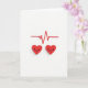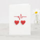 This card shows two bright red hearts sitting along the bottom of a white background, each with a sweet little smiling face made from two black dots and a curved line 🥰. They look slightly raised, with a soft shadow that makes them feel close and real. Above them runs a red heartbeat line that moves up and down across the card. One of the tall peaks is replaced by a tiny red heart, which makes the heartbeat feel like it’s about love, not just a medical line. There isn’t any printed message on the front, so the picture does all the talking. The simple red-and-white look keeps your focus on the two happy hearts and the idea of staying connected. It feels meaningful because it quietly says, “my heart is with yours,” whether that’s for a partner or a close friend ❤️.
