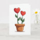 This design shows two red hearts shaped like little plant blooms growing from a warm terracotta pot on a plain white background. Each heart sits on a thin green stem, with one a bit taller than the other, which makes them feel like a sweet pair. The hearts have small light highlights that make them look slightly shiny, like they’re catching gentle light. A few green leaves spread out near the stems, and a soft shadow under the pot adds a calm, cozy setting. There isn’t any text on the front, so the picture does all the talking and leaves room for your own words inside. It feels meaningful because it compares love or friendship to something you care for over time, growing steadily with attention ❤️. It’s a simple way to say “I’m glad we’re in this together,” without needing a lot of extra explanation 🥰.