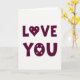 This card keeps things simple and sweet, with the words “LOVE YOU” taking center stage ❤️. The letters are a deep burgundy on a soft off-white background, so the message stands out right away. The font looks like a slightly rounded sans-serif style, giving it a friendly, modern feel. In “LOVE,” the “O” is replaced by a burgundy heart that holds three tiny white hearts inside it. In “YOU,” the “O” is also a burgundy heart, with one larger white heart in the middle and two smaller white hearts beside it. Everything sits centered on the front, with no extra objects or scenery, which makes the message feel direct and honest 🥰. It’s a meaningful card to give because it says what you feel without needing a lot of extra words. Hope it helps you share your Valentine’s Day sentiments with someone you care about.