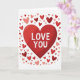 This greeting card shows a large red heart centered on a white background, with a gentle shading that makes it look slightly raised. Inside the heart, the words “LOVE YOU” appear in white, simple sans‑serif letters placed right in the middle so the message is easy to read. Around the main heart, smaller hearts scatter upward and outward like a little burst of affection. These tiny hearts range from deep maroon to soft blush pink, and they vary in size to give the design a light sense of motion. The bright red heart against the plain white space keeps the focus on what you want to say without distractions. It feels meaningful because it’s direct and honest, making it great for a partner, a close friend, or anyone you care about 🥰. The overall look is sweet and warm, like a quick reminder that love doesn’t have to be complicated ❤️. Hope it helps you share your Valentine’s Day feelings in a simple, caring way.