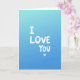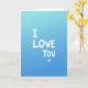 This card features the words “I LOVE YOU” stacked down the center in white, painted-looking letters with slightly uneven edges, followed by a small white heart near the bottom. The lettering has a casual, hand-drawn feel, and it stands out strongly against the background. Behind the message, the card fades from a light sky blue at the top into a deeper ocean blue at the bottom, creating a calm, steady setting. In the lighter blue area, there’s a faint speckled texture that adds a bit of depth without distracting from the words. The simple layout makes the message feel direct, like saying it out loud and meaning it. It’s a meaningful card to give when you want to be clear about your feelings, whether it’s romance or close friendship 🥰. The little heart adds a gentle finishing touch that makes the whole note feel extra caring ❤️. Hope it helps you share your Valentine’s Day sentiments.