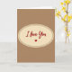 This card shows the words “I love You” centered inside a wide oval frame. The letters look like smooth, flowing handwriting in a warm sepia-brown, and the phrase sits right in the middle of the oval. The oval has a soft creamy beige fill, with a thin inner line and an outer border made of small, evenly spaced dots. Just under the word “love,” there’s a solid deep red heart that stands out against the softer colors ❤️. Everything rests on a simple taupe background that keeps the focus on the message and the heart. The overall look feels calm and close, like a note you’d keep in a drawer and read again later 🥰. It’s a meaningful card to give when you want to say “I love you” in a straightforward way without needing anything else. Hope it helps you share your Valentine’s Day sentiments.