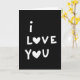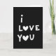 This greeting card shows a black background with the words “I LOVE YOU” in white, centered in a tall, vertical layout. The lettering looks like it was drawn by hand with slightly uneven strokes and soft, rough edges, like chalk on a board. In “LOVE” and “YOU,” each O is replaced by a small white heart, which makes the message feel extra caring ❤️. There aren’t any other objects or characters, so your eyes go straight to the words and the heart shapes. A faint dusty texture in the dark background adds a little depth and keeps it from feeling flat. The simple look makes the message feel honest and easy to believe, whether you’re giving it to a partner or someone you care about 🥰. It’s meaningful because it says everything clearly, without needing anything else. Hope it helps you share your Valentine’s Day sentiments.