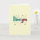 This greeting card centers on the words “I love you” in rounded, friendly lettering that feels easy to read. “I love” appears in a calm teal, and “you” shifts into a deep purple, so the message has a gentle color change. A bright red heart takes the place of the “o” in “love,” making the meaning clear at a glance ❤️. The letters and heart have a slight shadow that gives them a small lift from the creamy yellow background. Around the main message, scattered five-point stars in red, purple, and darker teal fill the space like a little celebration. The overall look feels sweet and close, like something you’d give when you want your feelings to come through without a lot of extra words 🥰. It’s a simple way to say “I love you,” and it’s easy to share your Valentine’s Day sentiments with someone special.