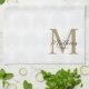 Minimalist Ivory Gold Anahaw Leaf Script Monogram kitchen towel