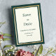 An elegant modern ivory, forest green, and gold minimalist luxury Wedding Save the Date invitation is perfect for any classy and sophisticated ceremony. This exquisite glam gold forest green dazzling simple design is perfect for the trendy and stylish couple or anyone. Customize this design with your own message and personalized information. All designs are printed