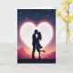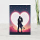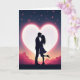 Designed with a deep indigo night sky filled with tiny stars, some with a soft pink tint. In the middle, a large white heart glows behind a silhouetted couple as they hold each other and share a gentle kiss. A fuchsia glow spreads out from the heart, making the couple stand out clearly against the light. Below them, the ground looks like layered waves or distant hills in soft pinks and oranges, like a calm dusk scene. The woman’s heel lifts slightly as she leans in, which adds a sweet, caught-up-in-the-moment feeling 🥰. There’s no text on the front, so the picture does all the talking and leaves room for your own words inside. It feels meaningful to give because it quietly says, “I’m close to you,” whether that’s romance or a caring friendship ❤️.