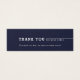 Modern minimalist text design in white on color editable navy blue background, custom your own business information and optional company logo on the back, clean and simple, unique professional thank you for your purchase insert for customer.