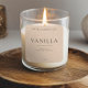 Minimalist kraft candle label. Create your own personalized product label for cosmetics and candle jars featuring simple modern design and kraft style image background.