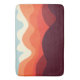 A bold minimalist landscape design in shades of red, orange, red-brown, cream and light blue.