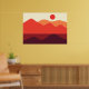 A bold minimalist landscape design in shades of red, orange, red-brown, and cream.