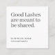 Elegant minimalist referral card for lash artists, lash studios, and beauty businesses. Features the phrase “Good Lashes Are Meant to Be Shared” on the front and a clean refer-a-friend layout with QR code on the back. Personalize with your business name, social handle, and referral details for a stylish branded client experience.