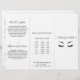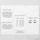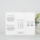 Simple trifold brochure with a minimalist black and white design featuring eyes, lashes and brows along with your business name in an elegant script font with swashes on the front panel. The back panel has your hours of operation and contact information. The inner fold panel has two headers and text boxes. The inside has multiple templates for information about your business on the outer panels and a price list in the middle panel. Fold lines are included and may be removed and the text and background colors may be changed to any colors you wish by clicking the customize button. This trifold brochure is perfect for a lash technician but can also work for any business in the beauty industry.