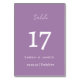 Elegant Lavender with white font Script Personalized Table Number Card