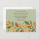 Invite your friends to a modern and elegant Friendsgiving dinner with this minimalist postcard. The design features a simple, delicate branch with leaves in soft, muted fall colors, creating a subtle yet sophisticated feel. The clean layout makes it easy to read all your important event details, and the customizable front allows you to make it your own. It's the perfect way to set a stylish, understated tone for your gathering.