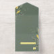 Minimalist leafy greenery gold sage green wedding all in one invitation