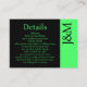 Modern, chic, and vibrant, this minimalist black and lime green wedding invitation enclosure details Card features elegant initials on a sleek lime green background. Designed for simplicity and sophistication, the clean layout emphasizes your names and wedding details without unnecessary distractions. Perfect for couples who love contemporary style with a pop of bold color.