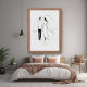 This Minimalist Line Art poster print portrays a romantic couple walking hand-in-hand, beautifully symbolizing love and togetherness. The flowing, elegant lines form a simple yet profound representation of affection, creating an emotional and tranquil atmosphere. The heart-shaped line subtly surrounding the couple adds a gentle touch of intimacy, making this artwork a perfect gift for romantic occasions such as anniversaries, weddings, or Valentine's Day. Produced by AI, this design captures the essence of modern minimalist aesthetics, making it ideal for contemporary, Scandinavian, or bohemian home decor. It seamlessly blends simplicity with emotional depth, perfect for living rooms, bedrooms, or as a unique wedding or anniversary gift. The use of black-and-white line art ensures versatility in any space, adding a timeless, elegant touch to any interior.