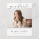 This modern minimalist graduation party invitation postcard, features a trendy calligraphy script font and simple lines. The classic black and white design is unique on trend style. Easily edit this online template. THE SAMPLE PHOTO IS NOT INCLUDED. REPLACE WITH YOUR OWN PHOTO BEFORE ORDERING.