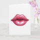 This greeting card shows a close-up of glossy lips centered on a plain white background. The lips are painted in watercolor-style washes of deep pink, fuchsia, and ruby red, with the colors softly blending into each other. Tiny white highlights sit on the upper and lower lip, making them look shiny, like fresh lip gloss. A thin, darker line where the lips meet adds depth and makes the shape feel real. There isn’t any other scenery, so your attention stays on the mouth and the sweet, flirty feeling it brings. There’s no text on the front, which leaves room for you to write your own words and make it feel more personal 🥰. It’s a simple image, but it can say “I’m into you” or “I care about you” in a direct, affectionate way ❤️. Share it to pass along warm Valentine’s Day feelings with someone you love or appreciate.