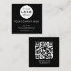 Create a clean and professional look with this customizable black and white business card. The front features space for your business logo, giving your brand a bold first impression. Easily personalize all of your contact information, including your company name, website, phone number, or social media handle. Also features a QR code on the back for your customers to scan to visit your website.