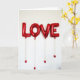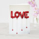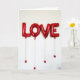 This greeting card shows four shiny red foil balloons that spell out “LOVE” across a plain white wall. The letters are large, evenly spaced, and look fully inflated, with little reflections that make them feel bright and real. Thin twine strings hang down from the balloons, adding a soft, natural detail under the glossy red shapes. Near the bottom, a couple of small red heart-shaped weights sit at the ends of some strings, echoing the message in a sweet, simple way. The only text is “LOVE,” and it’s formed by the balloon letters themselves in a rounded balloon style, centered on the front. It feels meaningful because it says what you want to say right away, while the hearts and strings add a gentle, caring touch 🥰. Whether it’s for a partner or a close friend, it’s an easy way to show you’re thinking of them ❤️. Hope it helps you share your Valentine’s Day sentiments.