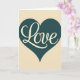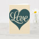 This greeting card shows a large heart shape in deep teal centered on a light beige background. The heart takes up most of the front, so your eyes go right to it without feeling crowded. Inside the heart, the word “Love” appears in a smooth, flowing letter style that looks like ink writing. The letters are a creamy off-white color and sit right across the middle of the heart. There’s a small shadow behind the word that makes it stand out slightly from the teal shape. The simple colors and quiet layout make it feel calm, steady, and sincere—easy to give when you want your feelings to be clear 🥰. It’s a meaningful choice for a partner or a close friend because it says a lot without needing extra details ❤️.