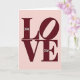 This greeting card features the word “LOVE” in four large maroon letters centered on a soft blush pink background. The letters are arranged with “LO” on the top row and “VE” below, giving the layout a steady, balanced look. Tucked inside the upper curve of the “L” is a small white “XX,” and near the lower right of the “E” is a white “O,” like quick little notes added by someone who cares. The main word uses a classic letter style with small finishing strokes, while the tiny “XXO” marks look more like casual pen marks. There aren’t any characters or extra objects, just the simple color contrast and the message front and center. It feels meaningful because it says what you want to say without making it complicated, which can be the sweetest way to show love 🥰. The small “XXO” details add a quiet hint of hugs and kisses, making it feel more personal ❤️.