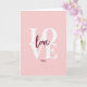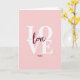 This greeting card centers on the big word “LOVE” in creamy white, all-caps serif letters set against a blush pink background. Look closely and you’ll notice each large letter is filled with many tiny heart shapes, adding a sweet detail without being loud. Across the middle, the word “love” appears again in deep burgundy, written in a flowing cursive style that overlaps the larger letters. Near the bottom, “YOU” sits underneath in matching burgundy serif letters, smaller and easy to read. The simple layout makes the message feel direct and sincere, like saying what you mean without overthinking it. The soft pink and warm burgundy together give it a gentle, romantic feel that works for a partner or someone you care about a lot 🥰. It’s a meaningful card to give when you want your words to feel steady and true, not complicated ❤️. Hope it helps you share your Valentine’s Day sentiments.