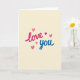 This greeting card centers on the simple message “love you” on a warm, creamy beige background. The word “love” is written large in bright fuchsia with a loose, brushy look, and it sits toward the middle of the card. Just below and slightly to the right, “you” appears in deep blue in the same casual letter style, making the two words feel balanced and easy to read. Around the text, small hearts in rosy shades—soft coral, pink, and deeper red—float above and between the words like little notes of affection. The hearts are different sizes and slightly uneven, which makes the design feel human and sincere rather than stiff. With the soft background and the strong pink-and-blue contrast, the message stands out right away and feels direct in the best way. It’s a meaningful card to give because it says exactly what you want to say, without needing anything more 🥰❤️. Hope it helps you share your Valentine’s Day feelings with someone you care about.