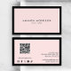 Minimalist Luxury Black/Pink QR Code Social Media Business Card