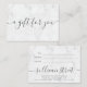 This trendy gift certificate says A Gift For You in a hand lettered style font. On the reverse you can personalize with your business name, type and contact details. There is space to write in the details of the gift certificate sender, recipient and value.