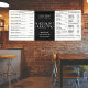Minimalist Business Price List Menu Fabric Banner with space for your logo, contact details and products list and pricing. This modern outdoor restaurant menu sign features bold serif fonts and simple layout, great to use for your craft market stand, pop-up shop, fast-food restaurant or coffee shop to easily display your products and pricing. You can tailor all colors and text to suit your business and brand.