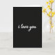This card keeps things simple with a solid black background that feels quiet and focused. In the center, the words “i love you” sit alone in white, written in a smooth, flowing handwritten style. The bright white letters stand out strongly against the dark space, so your eyes go straight to the message. There are no other pictures or objects, which makes the card feel private, like a small note meant just for one person. Giving it can feel meaningful because it doesn’t distract or joke around—it just says what you mean, clearly and honestly 🥰. The lettering has gentle curves that make the words feel soft and close, like you’re speaking them out loud. It’s a good choice for romance, but it can also work for a close friend when you want to be direct and kind ❤️. Hope it helps you share your Valentine’s Day feelings in a simple, heartfelt way.