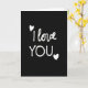 This card keeps things simple and heartfelt, with the words “I love YOU.” written in white on a solid black background. The lettering looks like casual handwriting, with slightly uneven strokes that make it feel human and real. The message sits across two lines, with “I love” above and “YOU.” below, so your eyes land on the emphasis right away. A small white heart appears near the start of the phrase, and another heart sits near the end, like gentle little bookends. With nothing else in the scene, the contrast between bright white and deep black makes the words stand out clearly. It feels meaningful because it says what you want to say without extra fuss, whether it’s for a partner, a close friend, or someone you miss 🥰. The simple layout also leaves room for your own note inside, so you can add a few honest words that match the message ❤️. Hope it helps you share your Valentine’s Day in a warm, caring way.