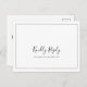 This minimalist menu choice RSVP postcard is perfect for a simple wedding. The modern romantic design features classic black and white typography paired with a rustic yet elegant calligraphy with vintage hand lettered style. Customizable in any color. Keep the design simple and elegant, as is, or personalize it by adding your own graphics and artwork. This wedding response postcard conveniently asks guests what meal they would like at your reception.