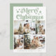 Minimalist Merry Christmas 4 Photo Retro Green Holiday Card
