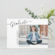 This elegant yet minimalist graduation announcement card, features design elements of modern text fused with calligraphy script. The graduates horizontal photo is artfully placed on the front of the card while the back of the card offers personalized text spaces for information about the graduation and future journey. To see more items like this, visit my store here at "www.Zazzle.com/LakeViewCardCo". Thanks