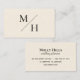 Minimalist, simple and modern beige initials diagonal monogram on cream business card. It's an elegant card for any business professional , consultant, interior designer, florist, wedding planner, marketing specialist, social media, entrepreneur, small business, clothing, fashion designer, cook, bakery and more. Customize with your name, job title, contact, address, social media, and website!