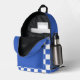 This backpack features a trendy checkerboard pattern in blue and white. The colors are fully customizable in the Design tool. Personalize it with name in white on blue front pocket.