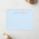 Custom note cards with your name in orange handwritten script lettering on a stylish soft blue background. Great gift idea.