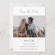 Announce your wedding date is modern style with this photo save the date card with editable script calligraphy in black and white.