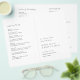 Modern style Catholic budget wedding program flyer featuring a simple and minimal layout with serif and script fonts.