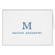 The design features a personalized monogram initial and name in a simple and modern typographic font.