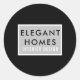 A simple modern classic round sticker featuring a grey nameplate with a white border and black and white text on a contrasting black background. Perfect for business branding, favour stickers envelope seals and correspondence needs.