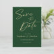 Make a statement with this Minimalist Modern Elegant Green Wedding Save the Date invitation. Simple yet elegant, this save the date card features beautiful and simple typography with "Save the Date" saying in gold calligraphy script and a bold dark green hue color scheme, perfect for setting the tone of your special day. Order now and let your guests know to mark their calendars for your unforgettable celebration. For more chic wedding invites, visit the Minimalist Elegant Script Wedding invitations collection. ©EpicSparkle